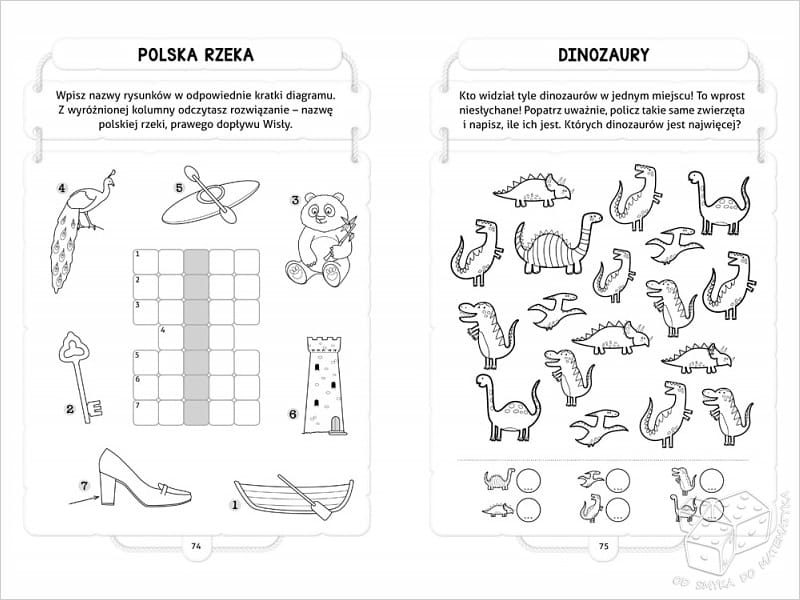 W książeczce znajdziecie: labirynty, krzyżówki i zadania logiczne.