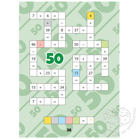 Książka jest zbiorem krzyżówek matematycznych. Działania w nich zawarte obejmują dodawanie i odejmowanie w zakresie 50. Na początek mała rozgrzewka, czyli działania w zakresie 10, które powoli wzrastają o kolejne 10, aż do 50. To świetny trening matematyczny i zabawa dla tych, którzy lubią rozwiązywać tego typu łamigłówki. Taka forma działań, może także zachęcić do rozwiązywania wszystkich, którzy nie przepadają za matematyką i którym ten przedmiot sprawia trudności.