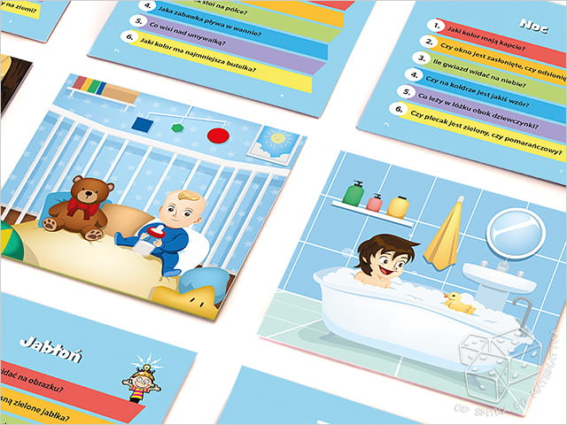 To fantastyczna gra dla wszystkich, którzy chcą sprawdzić swoją spostrzegawczość. Ile kart potrafisz zgromadzić w ciągu 10 minut gry? Pamiętaj, że odpowiedzi na wszystkie pytania znajdują się na karcie, więc patrz uważnie.
