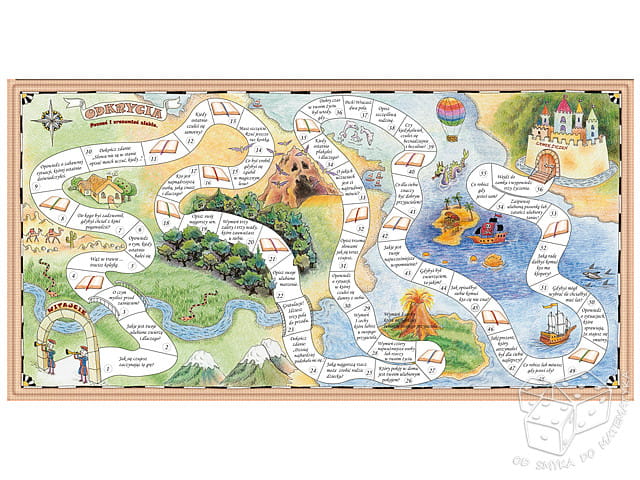 składana, kolorowa plansza do gry, 30 kart z ilustracjami, 4 karty do zadawania pytań, 2 czyste karty, 4 drewniane pionki – kolorowe zwierzątka, drewniana kostka do gry, książeczka z instrukcją