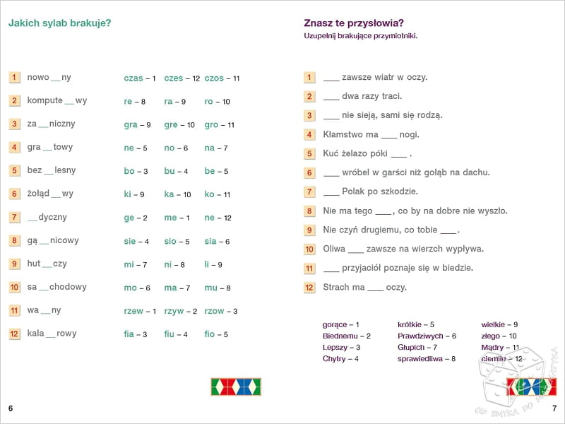 Ćwiczenia zawarte w tej książeczce mają na celu rozwijanie i doskonalenie umiejętności językowych dzieci, poszerzanie ich zasobu słownictwa, jak również rozwijanie znajomości zasad gramatyki języka polskiego oraz stanowią zachętę do używania poprawnych form językowych w języku mówionym i pisanym. Uszeregowane zgodnie z zasadą stopniowania trudności ćwiczenia łączą zagadnienia gramatyczne, frazeologiczne i stylistyczne. Niektóre zawierają elementy kodowania. Dodatkowo ćwiczenia te rozwijają inne kompetencje i umiejętności, takie jak: