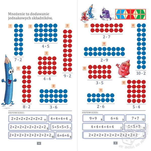 Łatwe ćwiczenia do nauki mnożenia 1 to bogaty zbiór zadań, który w przystępnej i zabawowej formie doskonali umiejętność mnożenia i dzielenia w zakresie 30. Zadania obejmują nie tylko symboliczny zapis operacji matematycznych ale również ich obrazowe przedstawienie za pomocą poglądowych rysunków, taki model uczenia sprzyja lepszemu zrozumieniu działań matematycznych, zależności i regularności stopniowo odkrywanych drogą samodzielnych poszukiwań.
