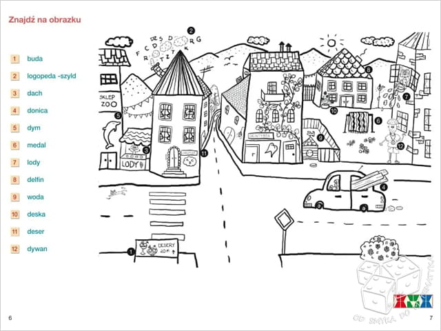 Logopedyczne potyczki 6. Głoski T-D to książeczka powstała z myślą o dzieciach, które mają trudności z wymową głosek. Ćwiczenia w niej zawarte zostały skonstruowane tak, aby zachować zasadę stopniowania trudności. Ich różnorodność pozwala dziecku ćwiczyć nie tylko właściwą wymowę, ale także szereg innych umiejętności (myślenie logiczne i analityczne, koncentrację i skupienie uwagi, analizę wzrokową i słuchową, kategoryzowanie, szeregowanie, układanie sekwencji). Celem ćwiczeń zawartych w książeczce jest utrwalanie prawidłowej wymowy trudnych głosek (w tym przypadku głosek tylnojęzykowych) podczas świetnej zabawy.