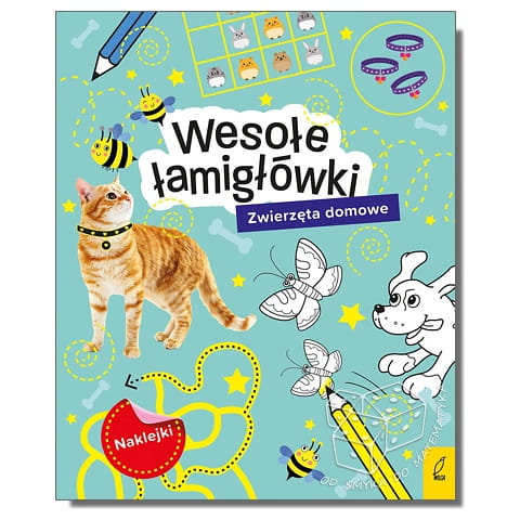 Kolorowa seria łamigłówek rozwijająca różnorodne umiejętności: małą motorykę, koordynację wzrokowo-słuchowo-ruchową, spostrzegawczość i logiczne myślenie. Wesołe łamigłówki, których motywem przewodnim są zwierzęta domowe, pozwolą dziecku ćwiczyć rozmaite umiejętności w formie zabawy. Najmłodsi znajdą tu labirynty, zagadki i sudoku, poszukają różnic, połączą kropki, odnajdą elementy ukryte na ilustracji i pokolorują obrazki. Poćwiczą logiczne myślenie podczas pierwszych zabaw z kodowaniem i kolorowaniem według klucza. Wysłuchają głosek w wyrazach i poćwiczą liczenie. A do tego dowiedzą się wielu ciekawych rzeczy na temat zwierząt domowych. Zadania uatrakcyjnią 4 strony z naklejkami.