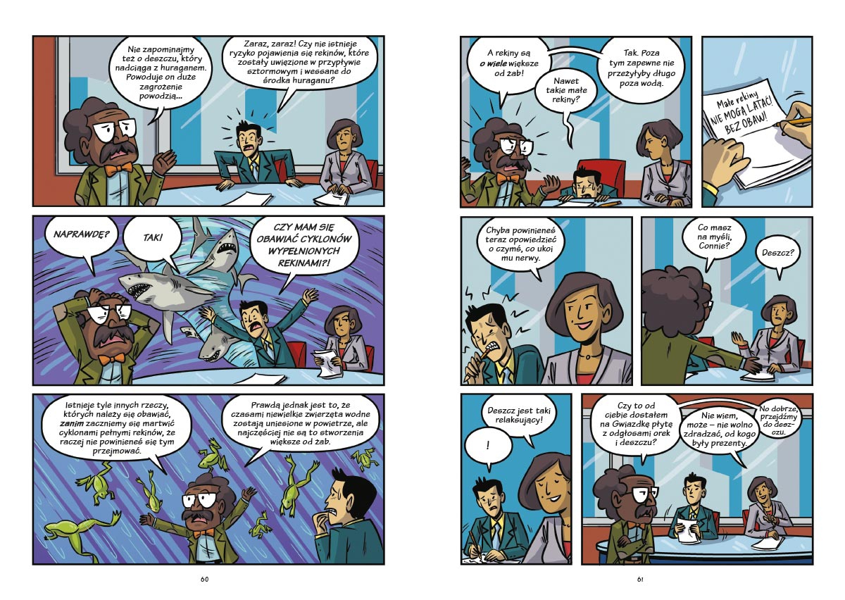 Gdy do miasta zbliża się kolejna „śnieżna apokalipsa”, pewien porywczy prezenter pogody postanawia wreszcie wyjaśnić, jak naprawdę przebiegają rozmaite, często niebezpieczne, zjawiska meteorologiczne. Czym różni się pogoda od klimatu? W jaki sposób satelity meteorologiczne pomagają nam w przewidywaniu przyszłości? Czy można uciec przed tornadem? Czy ruch obrotowy Ziemi wpływa na wiatry wiejące w atmosferze? I czy meteorologia ma coś wspólnego z meteorami? Niezmordowany Norman Weatherby odpowie na wszystkie, nawet najdziwniejsze pytania.